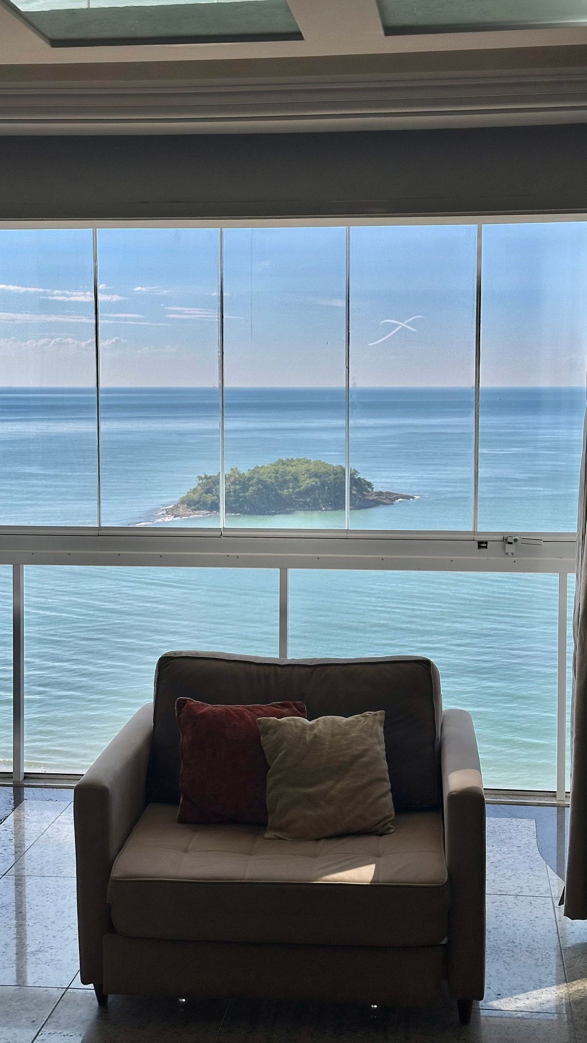 O condomínio está em reforma — janelas estão isoladas (a suíte principal e a sala seguem com vista total para o mar)