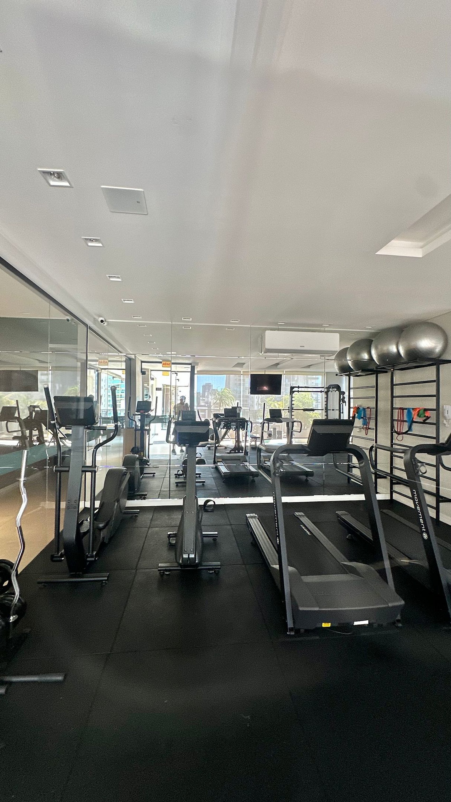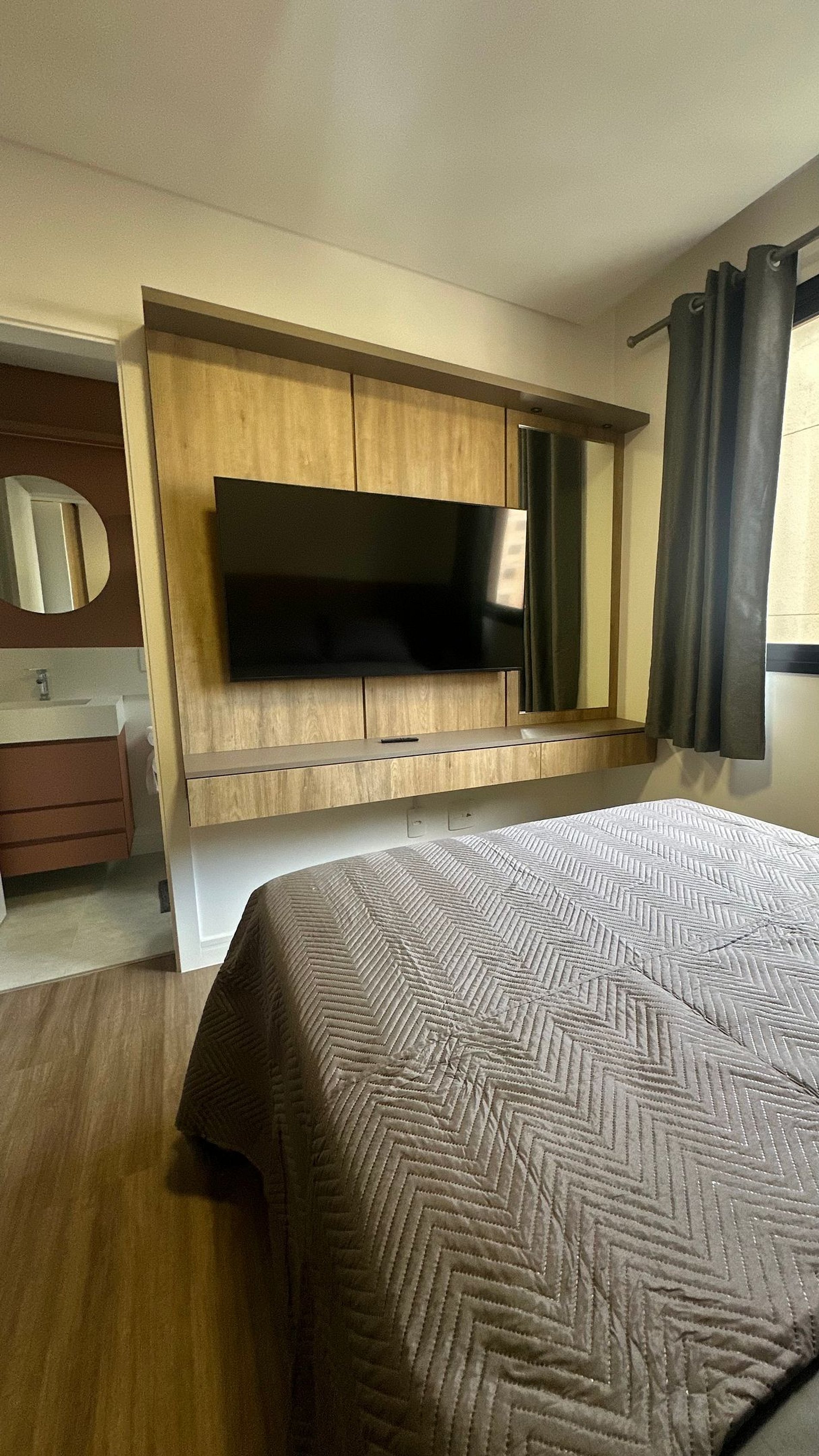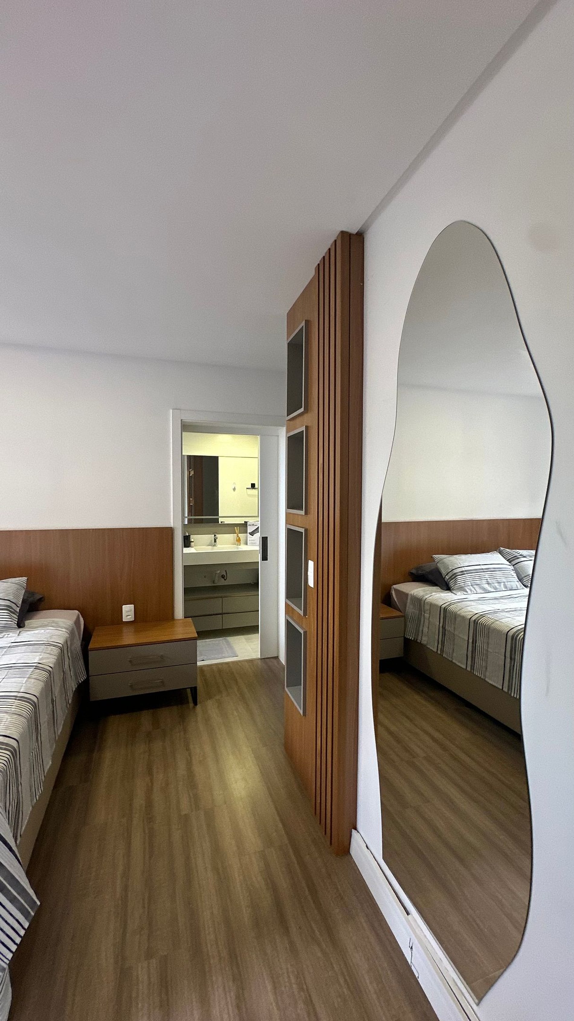 3 suítes, todas com ar-condicionado, guarda-roupas e TV de 50”