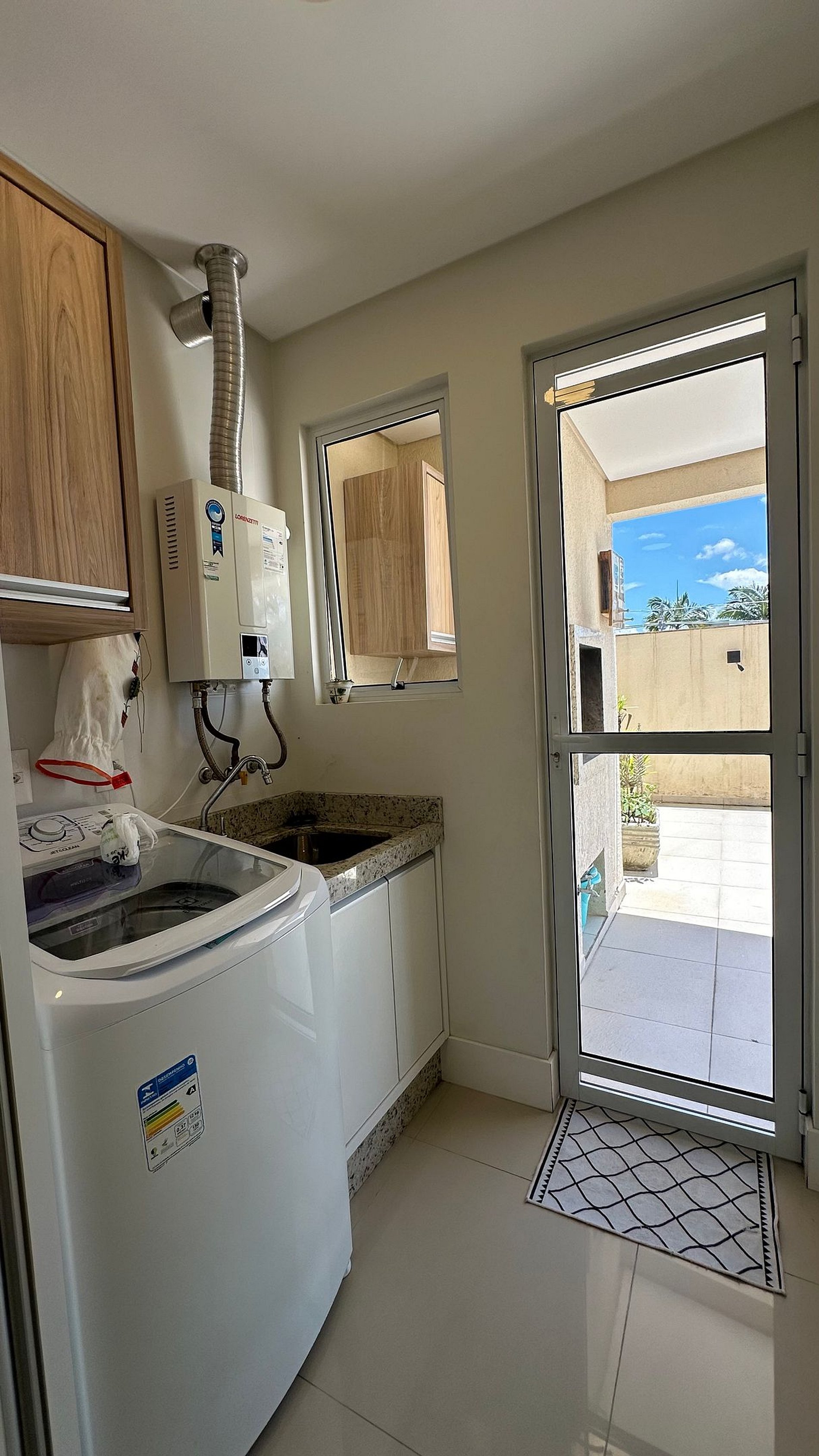 Área de serviço com máquina de lavar roupas