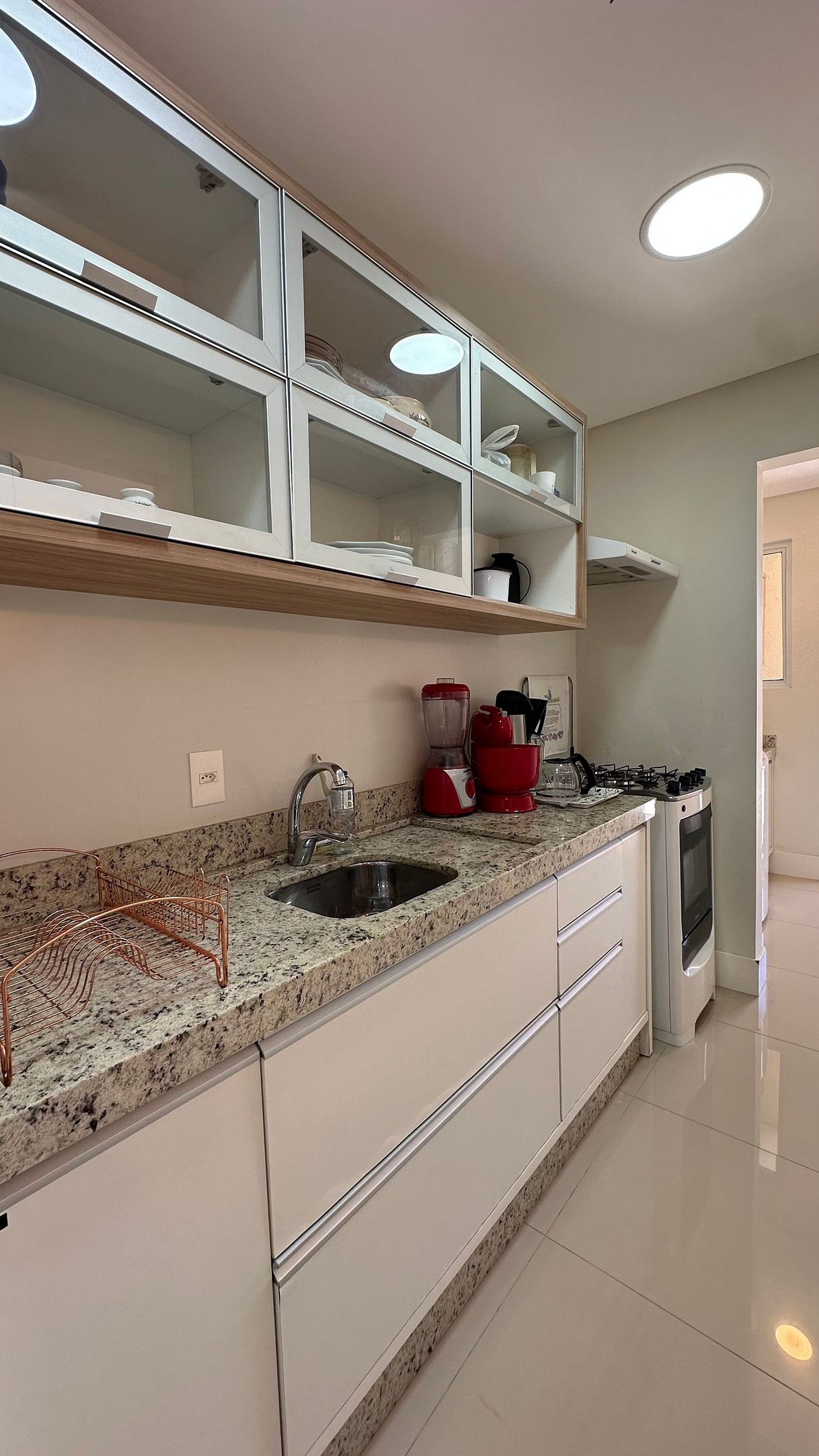Cozinha completa, equipada com utensílios e eletrodomésticos essenciais
