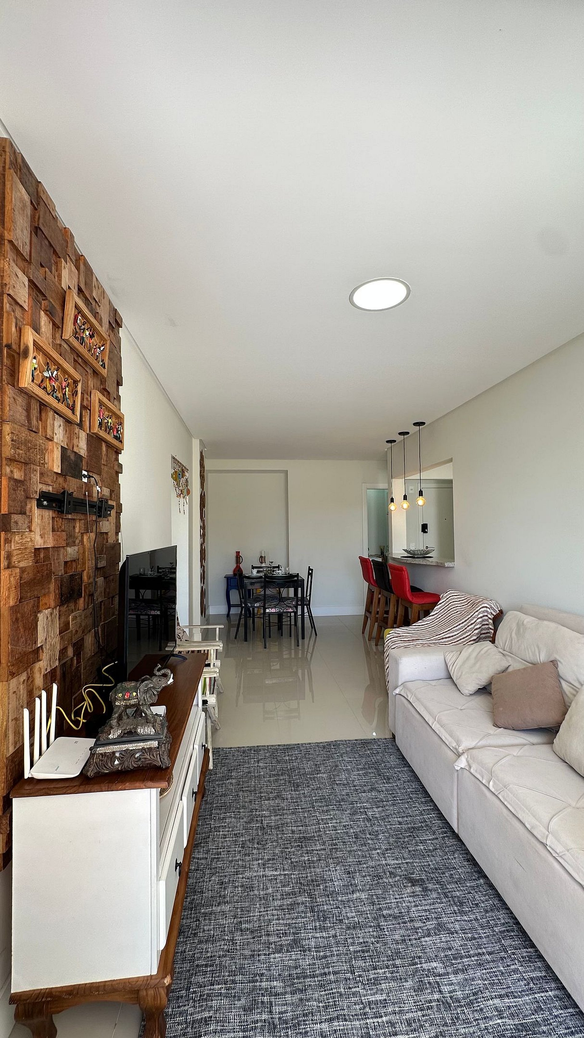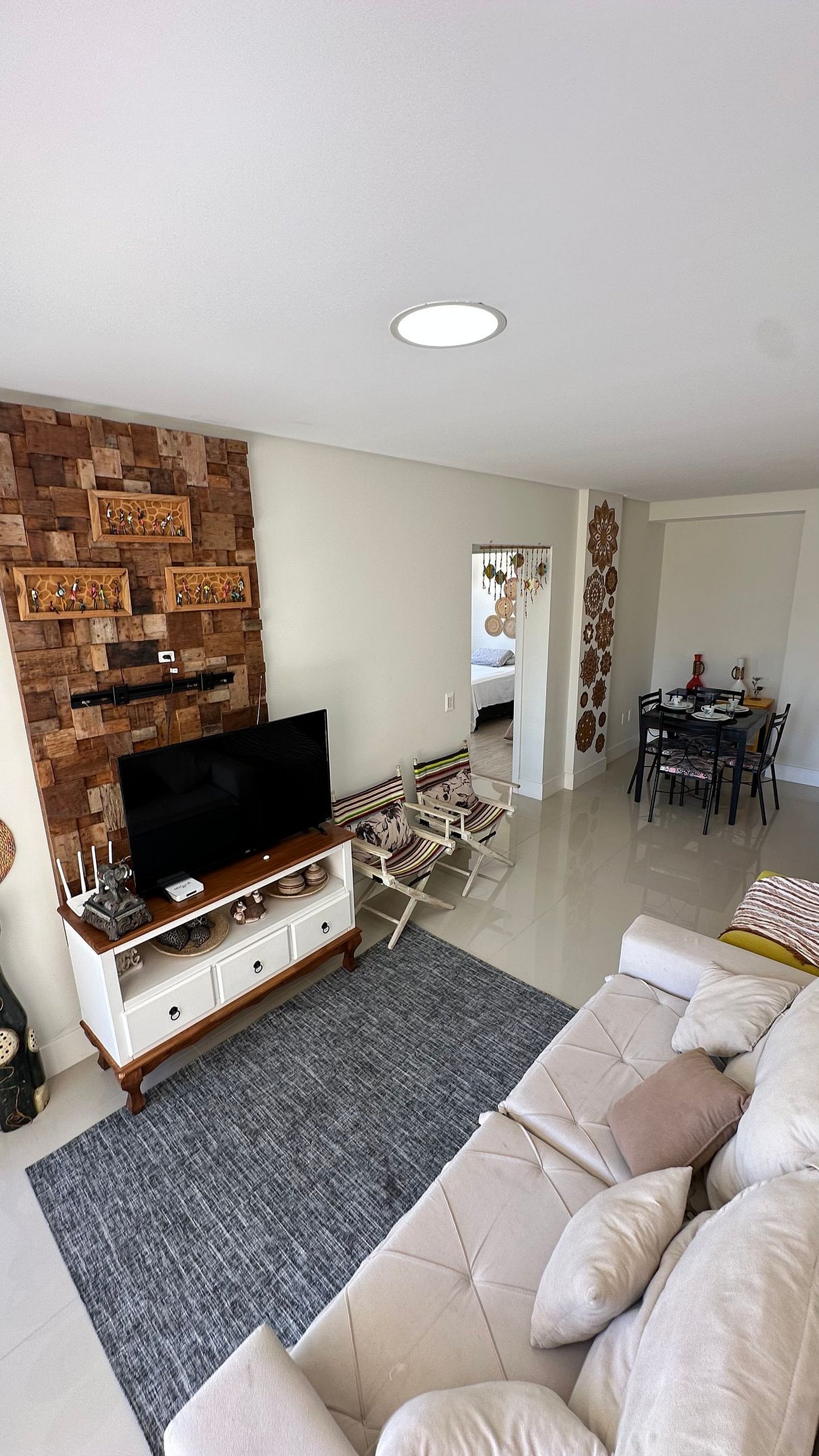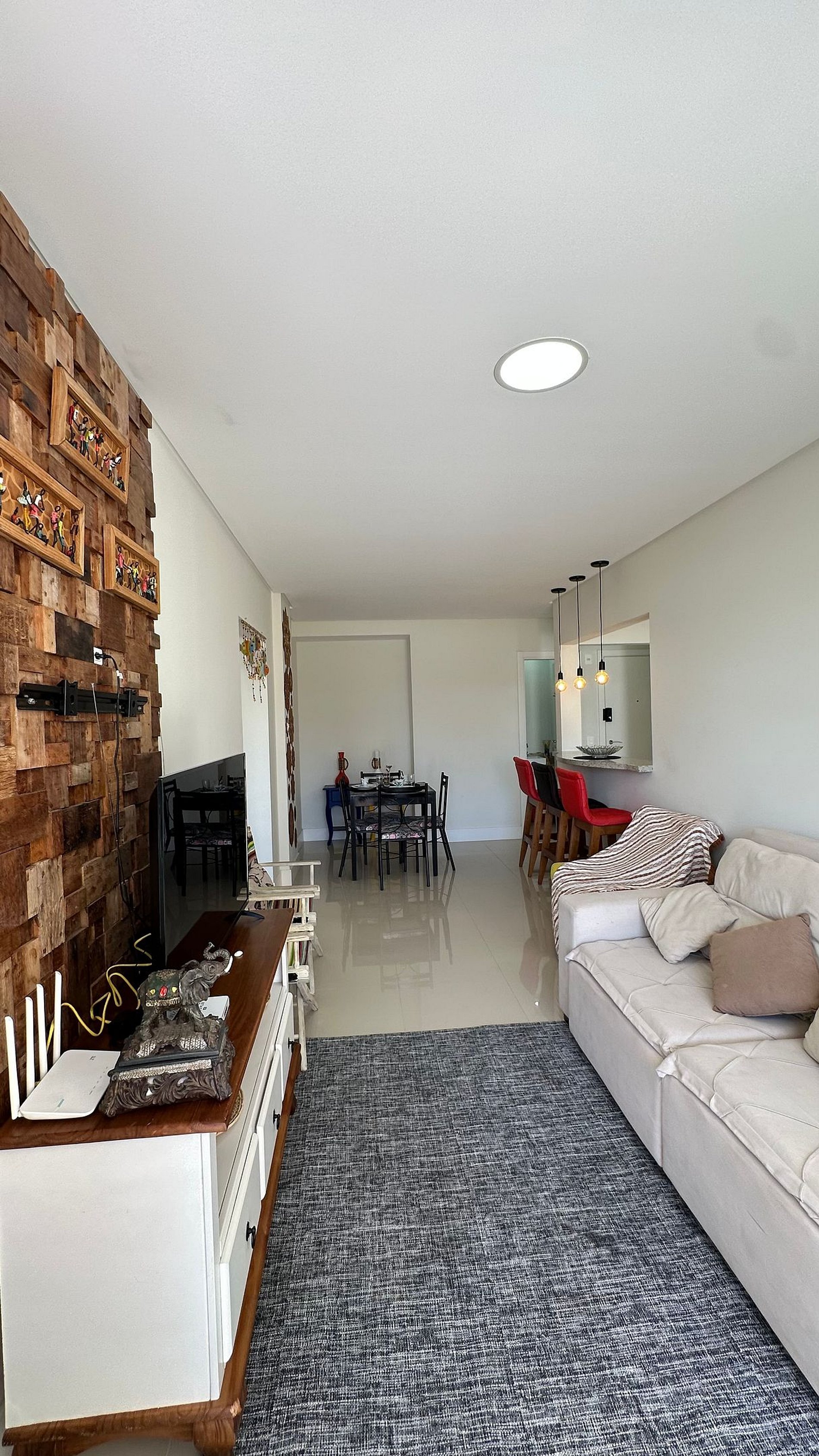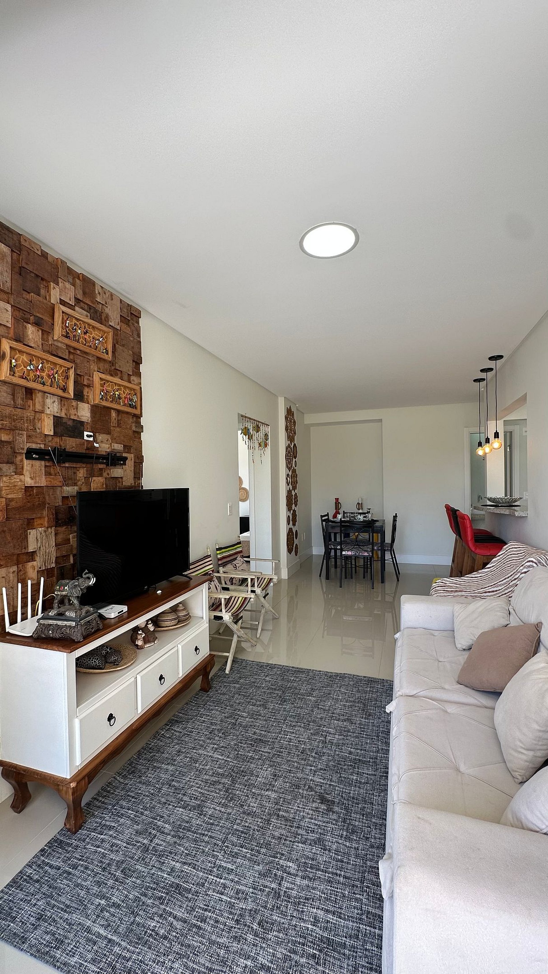 Sala de estar e jantar integradas, ambiente aconchegante para descansar ou fazer refeições
