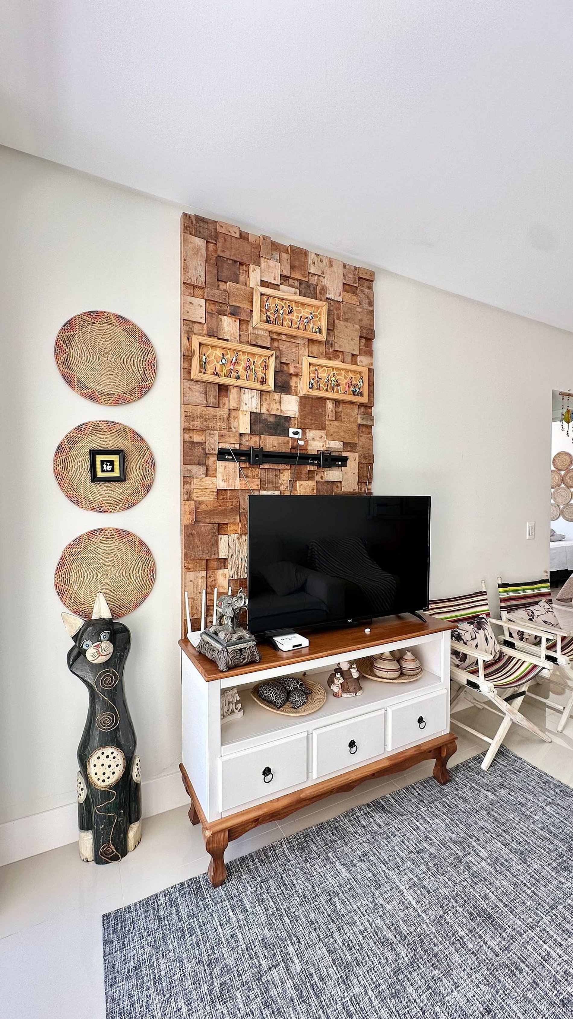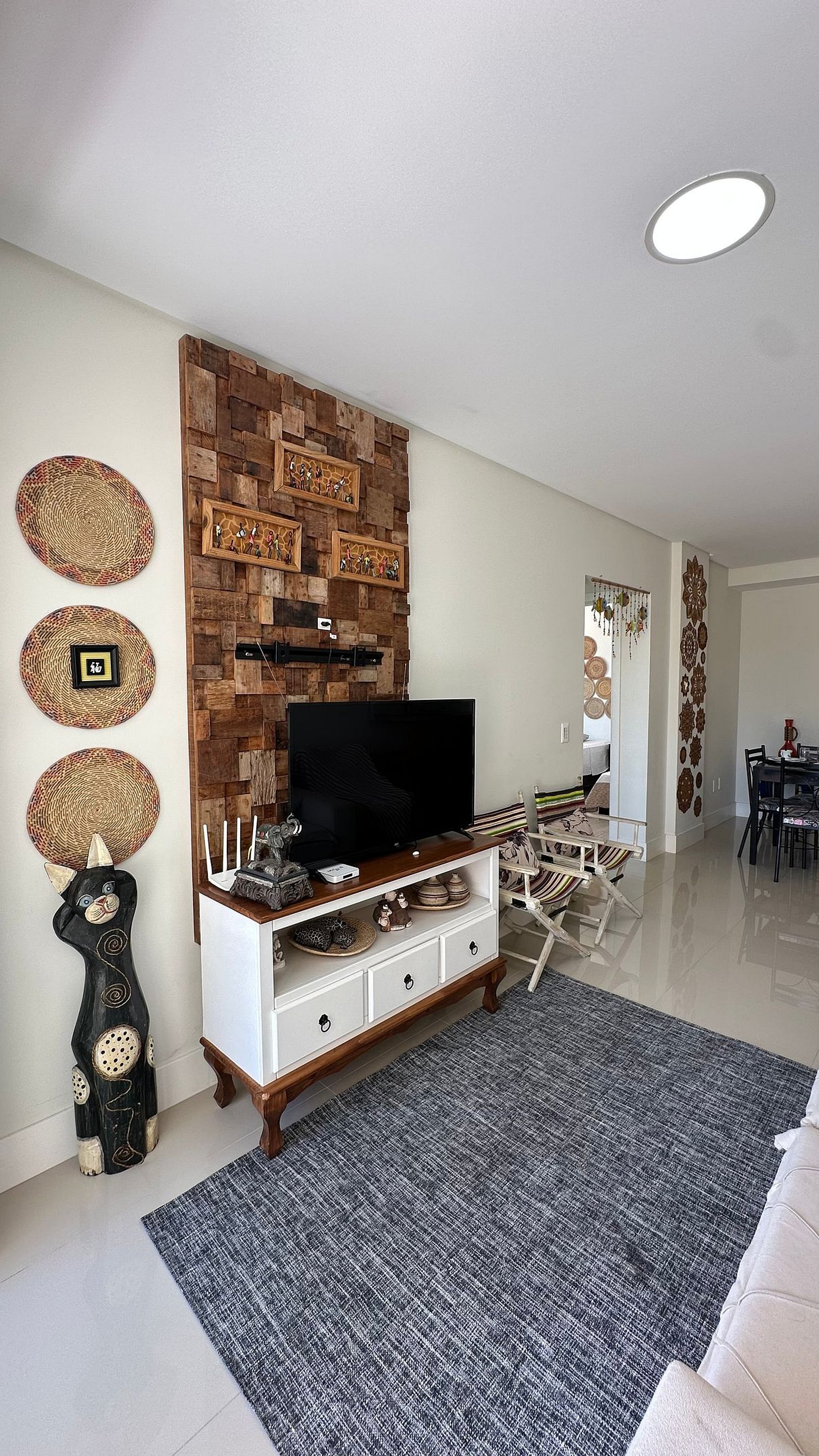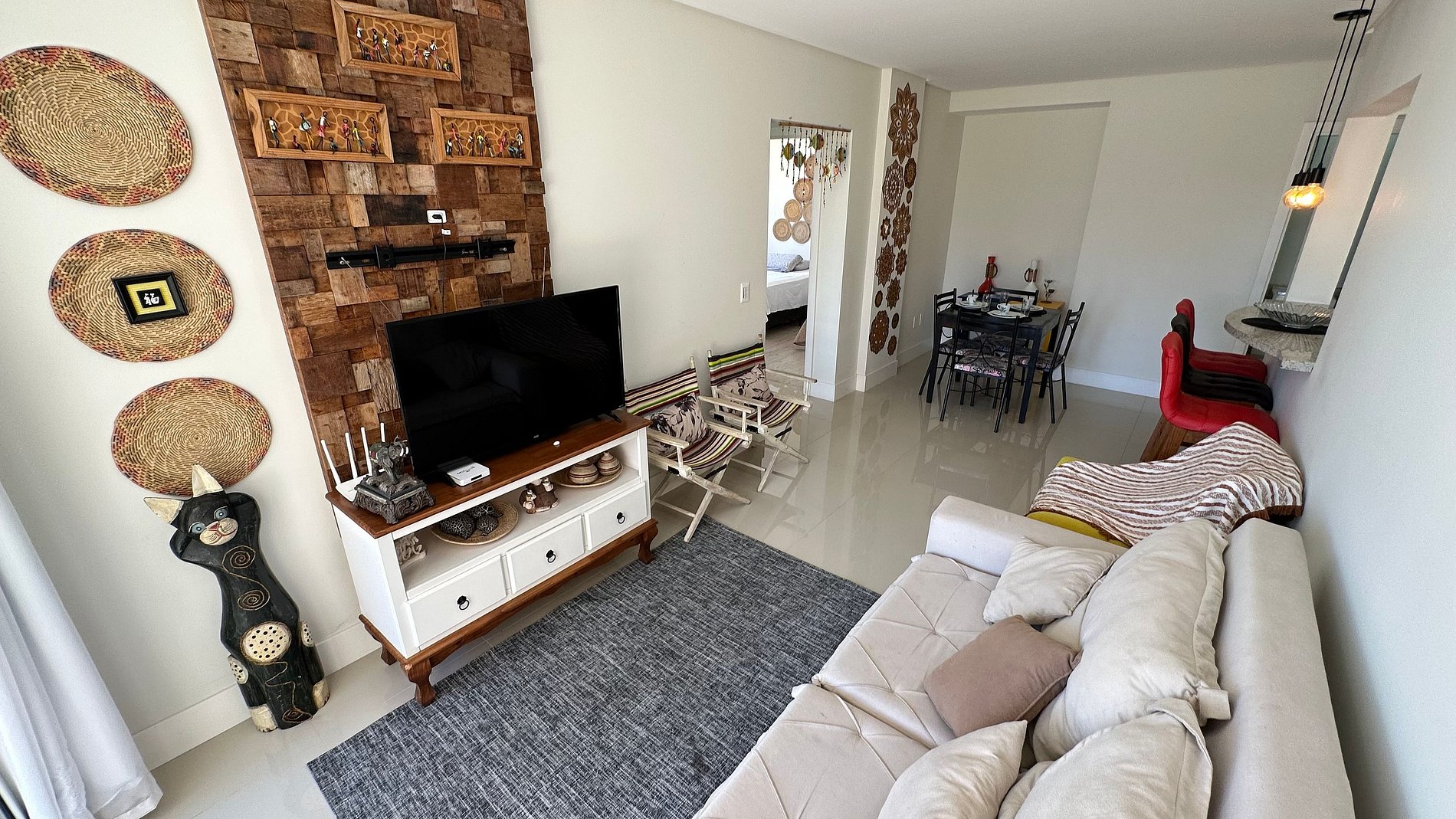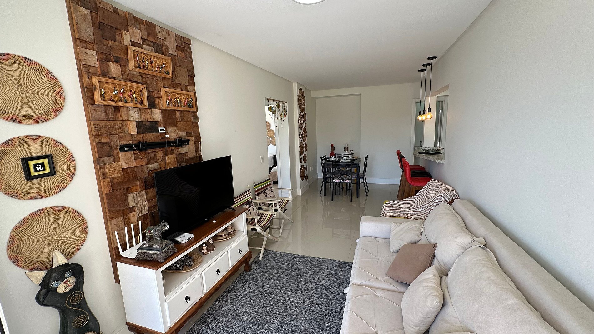 Sala de estar e jantar integradas, ambiente aconchegante para descansar ou fazer refeições
