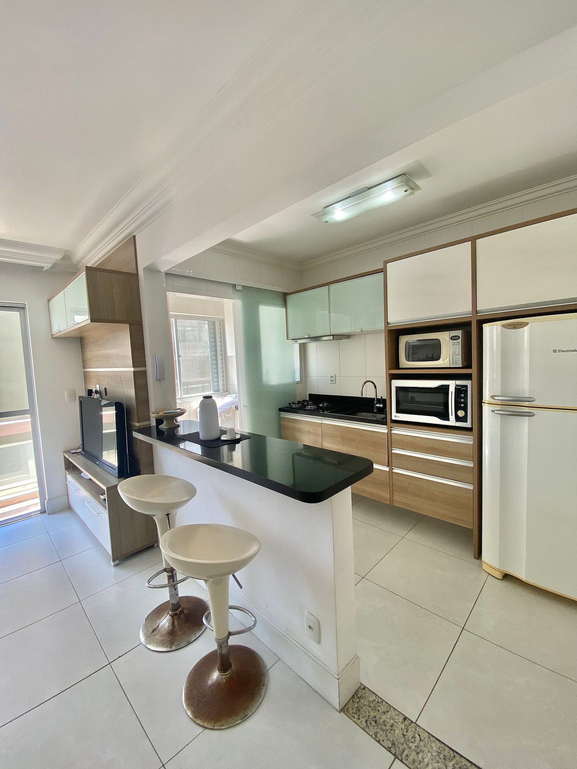 A sacada proporciona um espaço adicional para desfrutar do clima agradável de Balneário Camboriú, e para apreciar a brisa ao fim do dia.