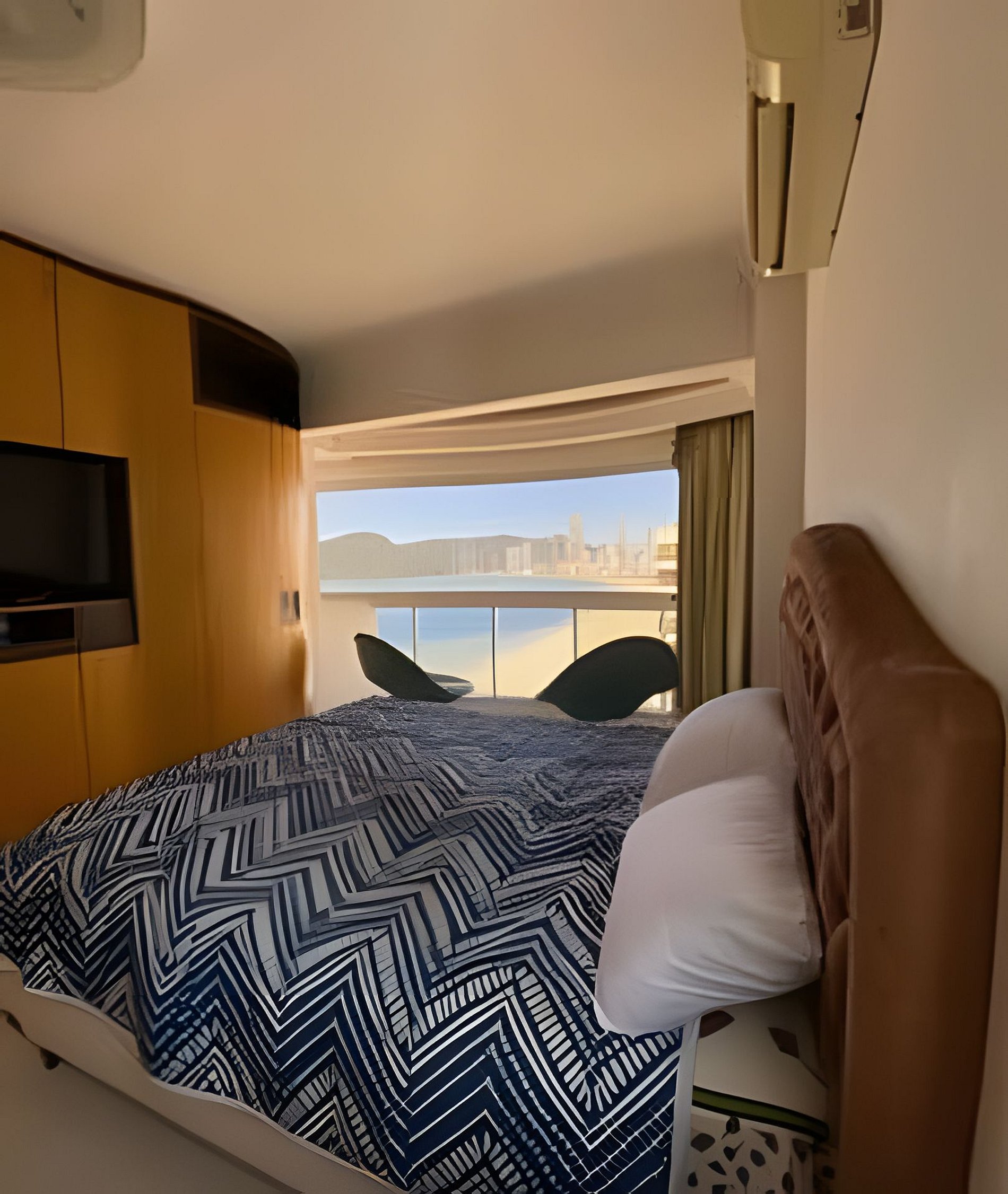 2 dormitórios com cama de casal e vista mar