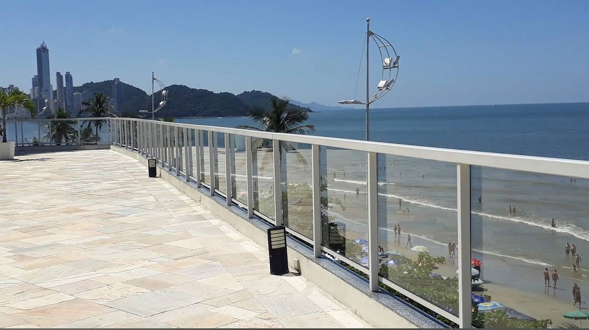 Ampla sacada frente mar — perfeita para relaxar admirando a Ilha das Cabras